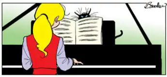 - Combined with Stealth Pun: A Sunday strip featuring Edda and Amos making out at the piano included a musical notation that means "hold it as long as possible".