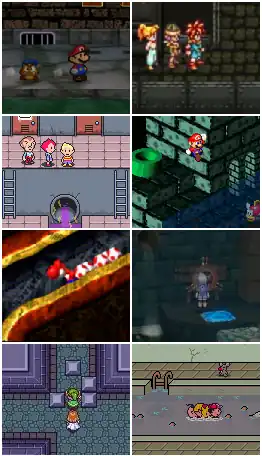 - ↑ Clockwise from top right: Chrono Trigger, Super Mario RPG, Tales of Symphonia, EarthBound, The Legend of Zelda: A Link to the Past, Yoshi's Story, Mother 3, Paper Mario