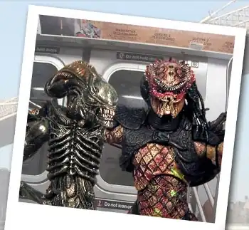 Alien Loves Predator is a photo webcomic created by Bernie Hou that revolves around the strange lives of Abe (the Alien) and Preston (the Predator), portrayed by Alien and Predator action figures. Contrary to the adversarial nature shown between the two species in a certain other franchise, these two are best friends and roommates living in New York City. Equally contrary to what you'd expect, their lives are amazingly mundane, causing several jokes to rely on observational humor centered around aspects of day to day life in NYC, which has granted the strip several comparisons to Seinfeld. Of course, every so often the inherent weirdness of the strip's universe kicks in, leading to stuff like a talking tattoo of William Hung, a sentient smell, time traveling Chinese takeout deliverymen, among others.