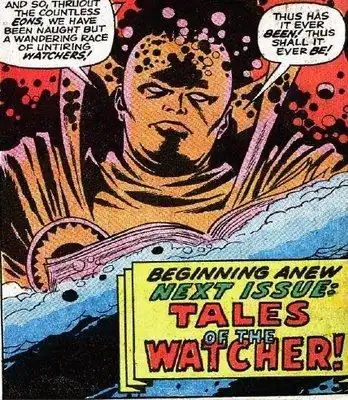 - Uatu from Marvel Comics, who's bound to exactly the degree of interference that makes the plot more interesting. He is part of an entire race of beings called the Watchers. They are highly evolved and highly powerful but their roles are to... just watch. Even with the rare instances of Uatu doing anything at all, he's considered one of the more meddling members of his race.