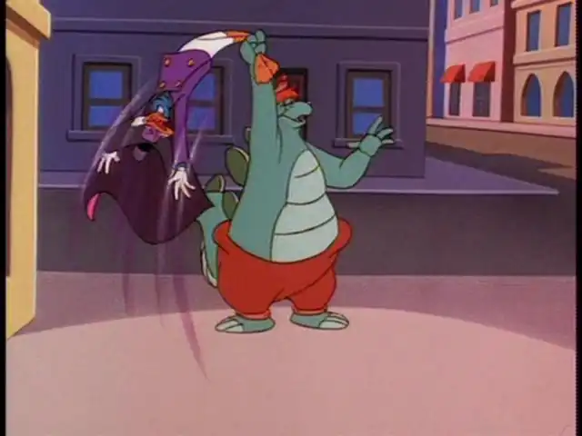 - And we can't forget the scene pictured above: "Put out the Darkwing! Put out the Darkwing!" Actually, this happens a lot to EVERYBODY in that show.