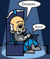 - Order of the Stick: Lord Shojo is possibly one of the most triumphant examples to date. He rules a Deadly Decadent Court and more importantly he knows it, and it's implied that it took a few assassination attempts to realize he couldn't just throw his weight around and expect to live very long. Instead he pretends to be old and senile and continually refers to his cat for advice and pretends he gets useful advice from him and is following it. He eventually reveals to Roy that the nature of the Deadly Decadent Court is such that if he acts old and senile and he can do pretty much whatever he wants. It helps that the nobles are actively screwing each other over so much that they assumes he's just being manipulated by everyone.