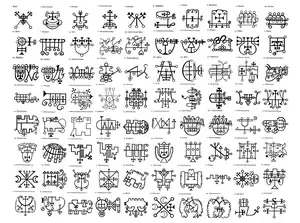 ![]() The sigils of the 72 demons, according to Mathers and Crowley. | |