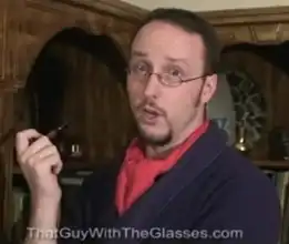 Ask That Guy is another character played by some nutjob named Doug Walker on the site That Guy With The Glasses. The basic idea is that people send their questions to him, this robe-wearing, pipe-smoking, murderous and perverted nutjob, and he give them answers. Horrifically murderous, depraved, delicious answers.
