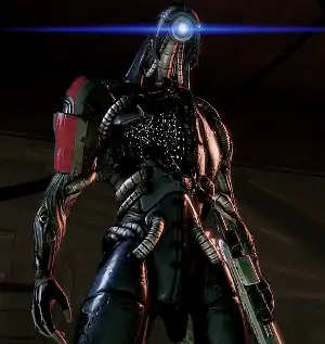 - Legion (the image above and inspiration for this trope) and EDI in Mass Effect 2.