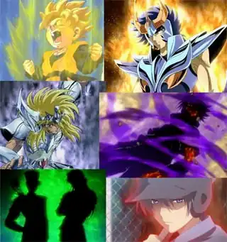 - ↑ source from top left across then down: Goten, Phoenix Ikki, Cygnus Hyoga, Sasuke Uchiha, Kazuma Kuwabara (L) and Kurama (R), Yoshino Yusuke.