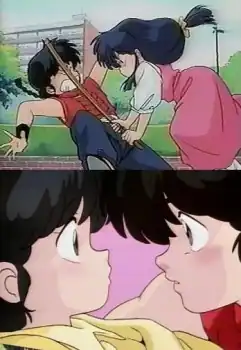 May lead to Destructo-Nookie or Literally Falling in Love. Either Slap Slap Kiss or Kiss Kiss Slap tends to be involved at some point. If the Unresolved Sexual Tension is sustained over some time, expect a "Take That!" Kiss or "Shut Up" Kiss in one or both directions, too. If the two character don't stop fighting even after they become an actual couple, then they've joined The Masochism Tango.
