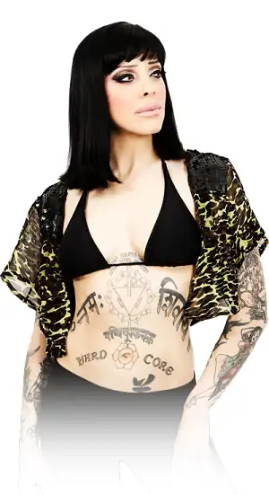 She is heavily tattooed, getting her first tattoo, an Egyptian Eye of Horus, when she was 16. Her tattoos include a symbol of the Tao, Japanese writing, Buddhist poetry and images (such as the Bodhisattva) and Hindu imagery. She has stated on MTV that her favorite tattoo, on her left arm, reads "Survivor."