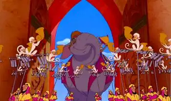 - In the Disney Aladdin, Aladdin gets an extended Big Entrance with the "Prince Ali" music number. Elephants, dancers, the Genie's magic, and practically kicking the 200-foot door down (and into Jafar's face for Bonus Points). The whole thing was mainly meant to impress the Sultan and woo Jasmine, but an entrance doesn't get much bigger than having the entire city focused on you during a musical number.