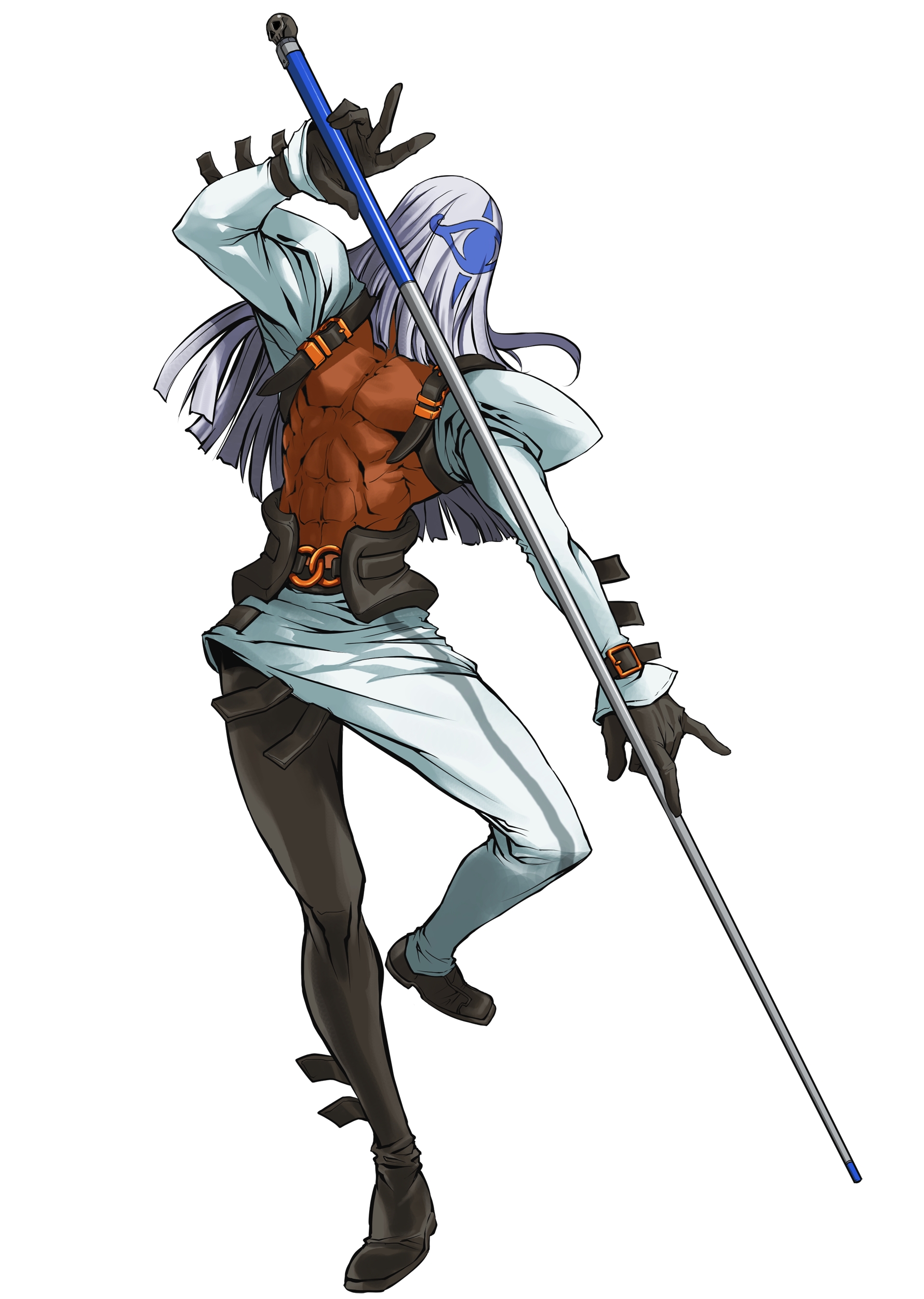 - Venom from Guilty Gear wears his hair like a literal veil and has a creepy painting of an eye superimposed on it. However, depending on the artwork, sometimes you can see a small portion of his face by looking around the hair-veil (but sometimes not), and it does flip up and leave his face completely exposed and visible in his in-match falling animation.