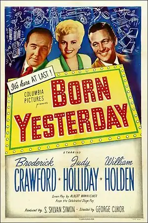A 1946 play by Garson Kanin, is also best known for its 1950 film version directed by George Cukor. The play opened with Judy Holliday, who won an Oscar as Best Actress for the film version where she stared with Broderick Crawford and William Holden.