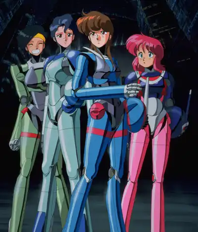 - Super-Hero Origin: Given the above, the OVA is oddly notable for avoiding this; we never actually get around to seeing how the team got together, and the first episode is practically In Medias Res. At best we get some vague hints about Sylia's reasons for wanting to assemble the team in the first place, but how in the world Priss, Linna, Nene and Sylia all fell in together (when it seems highly improbable that they'd all meet by chance) is never even remotely explained. It seems like they were building toward addressing this in the original series (it would've been a logical segue from the team-building of OVA ep8), but, well...