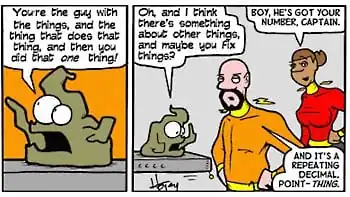 - King Superman: Both the characters and author seem to use these from time to time, particularly the word 'scorpony'.