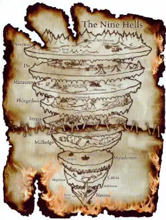 It's not bad enough to have just one plane of eternal torment. Many times, Hell has multiple layers, with those layers being tailored toward punishing certain kinds of evil, and the ones further down holding even more horrible punishments than the upper layers. Fire and Brimstone Hell is usually just one of the lesser levels; sometimes they really get creative.
