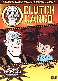 Clutch Cargo is a syndicated Adventure Series from 1959 that is most remembered for its use of Syncro-Vox, a process in which the photographed lips of human actors were superimposed on static drawings (a technique spoofed in an extra on The Incredibles DVD and mostly remembered today as being a shtick for a Conan O'Brien sketch). Otherwise the animation was extremely limited. We're talking one frame every two, three seconds.
