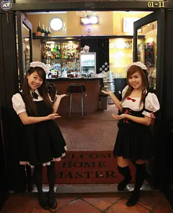 A Maid Cafe features attractive waitresses who dress and "perform" as obsequious and obedient maids. A Butler Cafe is similar but with "butlers" and "footmen". Waitstaff at Maid and Butler cafes usually use extra-polite language, including the obligatory greeting "Welcome home, Master / Mistress!"