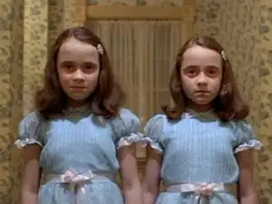 - One of the most famous examples in the Western world would be the creepy sisters from Stanley Kubrick's film version of The Shining (though their ages are stated as different in the film—8 and 10 years—they look identical and are actually played by twins). They were based on a photo of a set of twins taken by Diane Arbus.