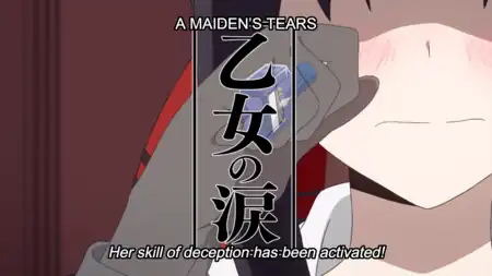 - Kaguya from Kaguya-sama: Love Is War carried eye drops and used them to pretend she was crying. It would be in character if she carried the eye drops around specifically to use this trope.