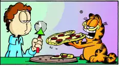- Indeed, in one episode of Garfield and Friends, Garfield hesitates about taking the cake, realizing that Jon and Odie should have some. So he cuts a small slice, eats the rest, and says to the audience, "You knew I was gonna do that." Then he takes the slice and eats it too, commenting "You knew I was gonna do that too."