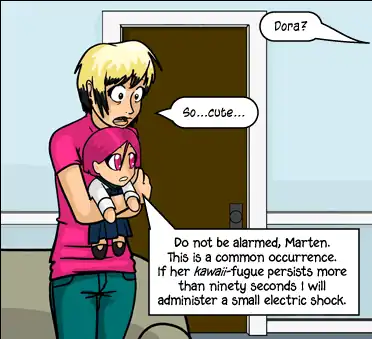 - Questionable Content has a moment of this that is shown above. It is known as "Kawaii-fugue"