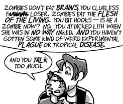 - In the Sluggy Freelance slasher pastiche "KITTEN," two Red Shirts, Randy and Cindy (a black guy and a slut, respectively), are in a car together, casually discussing how they're likely to die. Randy even mentions that he'll probably go out with some lame pun. Sure enough, Randy gets decapitated in that very comic (after being told to "quit while you're ahead")