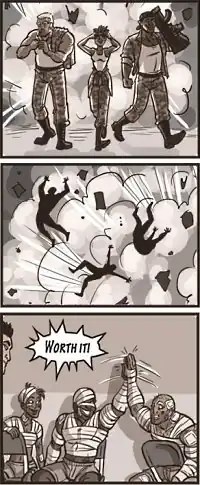 In a Deconstructive Parody the giant space station will still wipe out half the Earth, and while the characters will reflect on this tragedy, and take it seriously, it will still be presented humorously. Maybe all that's left are the Acceptable Targets, or perhaps the doomsday device is entirely ridiculous and non-threatening in conception, yet still works. Either way, what matters is that the plot is still treated as real, and plays out tropes as you would expect from an atypical Deconstruction.
