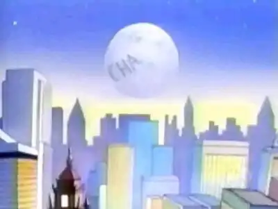 - Later, The Tick goes to the moon on a mission to carefully plant explosives so that the CHA will be removed...and botches it, of course. The resulting explosion causes everyone to believe he's dead, and only the C is removed—so the moon's lettering now reads "HA". Later that episode Omnipotus (a parody of Marvel's Galactus) takes a bite out of the moon (after The Tick gives him a Patrick Stewart Speech to protect Earth). The half-eaten, scarred moon is then seen regularly throughout the series.