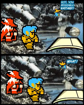 - When Gideon kicks Ramona down a flight of stairs in the climax of Scott Pilgrim Versus the World, Scott and Knives give him an appalled look and he responds with this. Then they beat him to a pulp.