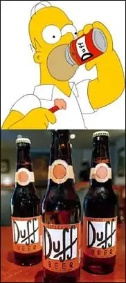 • Duff brand beer was sold in Australia in the mid 1990s. Though the cans bore no resemblance to the ones on The Simpsons, the homage was obvious, and the beer was pulled from sale at the insistence of Twentieth Century Fox. Cans now turn up on Ebay for sizeable amounts.