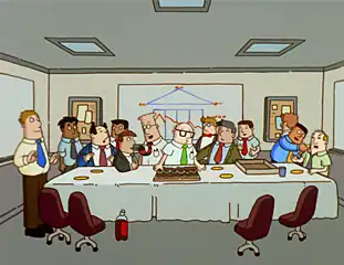 - Comically Missing the Point: Often by the Pointy-Haired Boss and marketing people in general. One example is during a proposal for an underwater barbeque: