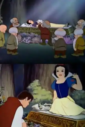 - Arguably, the first instance of this trope is the death of Disney's Snow White and The Seven Dwarfs. The scene is pretty well dragged out so that you still feel like she's dead even though, if you've been paying attention, you know she's really only asleep.