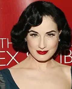 Dita Von Teese is a burlesque dancer and some-time actress best known for being the ex-wife of rockstar Marilyn Manson. A shining example of a person with Shiny Midnight Black hair, despite her dyeing it to get the shade.