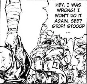 - Nextwave: The squad does this by accident. Upon de-transforming a police officer who had been changed into a giant mecha, they leave him in the care of a crowd that claims to be his friends. In his weakened state, they don't notice his panicked eyes and whispered protests, and don't know that the cop is extremely corrupt and they just handed him over to the people he's been terrorizing and extorting for the last twenty years.