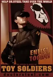 - Strange Salute: In several of his propaganda posters, Dr. Steel is shown saluting with his fist over his heart, looking up and (usually) to his right (toward a better future?). This has become the de facto salute of the Toy Soldiers.
