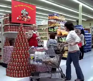 Some supermarkets do have displays like this, but generally they consist of non-fragile items and are held up by cardboard support structures.