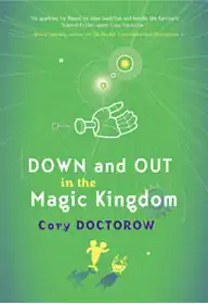 Down and Out in the Magic Kingdom is a novel by Cory Doctorow, set in the future of the Bitchun Society, which has abolished conventional money (replace by Whuffie, a complex reputation-based system), scarcity (with cheap renewable energy and nano-assemblers), death (replaced by brain uploads and subsequent downloads to fast-grown clones), and government (with entirely ad-hoc structures).