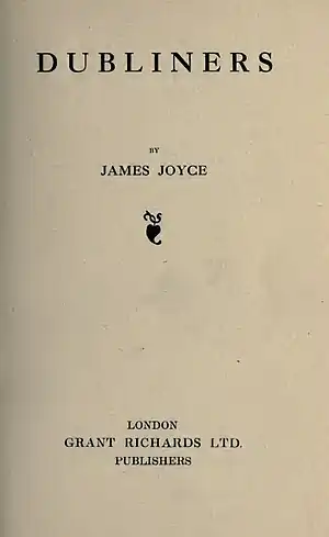Dubliners is a 1914 collection of short stories about various residents of Dublin written by James Joyce. It was his first published work and is much less experimental than Ulysses, although still a masterpiece. The stories are interrelated, although no one character repeats. But the first and last stories (especially the last one) can be very easily interpereted as being about early versions of Stephen Dedalus, the main character of his first novel, A Portrait of the Artist As A Young Man.
