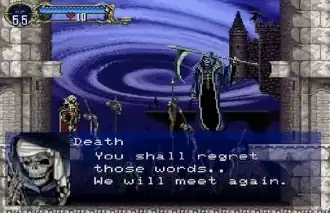 - Each generation of Belmonts in Castlevania has fought Death (and he just won't stay dead!) Amusingly, Alucard in Symphony Of The Night, having been evil and helped his dad Dracula, is on a first name basis with Death when they meet at the start of the game. Doesn't keep Death from punking your equipment, though.
