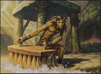 - In Michael Moorcock's Swords Trilogy, the Nhadragh race was once highly advanced in both magic and culture. By the time of the stories, they had declined to the point that they were conquered and used as slaves by the Mabden (humans).