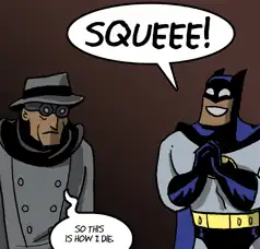 - The Batman: The Animated Series episode "Beware the Gray Ghost" had Batman showing as much squee as he is capable of upon meeting the actor of a childhood TV hero, the "Gray Ghost", who seems to have inspired some of the Batman persona. Played by Adam West as a Shout-Out to earlier incarnations of Batman.