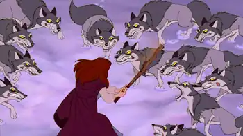- The Secret of Kells, when Aisling sics her wolves on Brendan as he's traveling through the forest in search of oak galls. Later inverted when Aisling sics them on the Vikings that are about to kill Brendan and Aidan in a Big Damn Heroes moment.