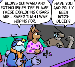 - MAD magazine had an example in Sergio Aragones' "A MAD Look at Smoking"; a guy s given a cigar by a co-worker, but he can't smoke it in the break room, where smoking isn't allowed. He's not allowed to in the bar down the street, or a restaurant, or most other places he goes to. Finally, he finds a club for folks who smoke cigars, and lights up... Only for it to explode, resulting in everyone in the club laughing at him.