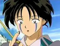 - The above picture is from Inuyasha. This character is part of the Band of Seven, whom all have stripes of some sort on their faces. Also, when the title character transforms into a full demon he develops facial markings akin to his brother's (who has stripes and a crescent on his forehead), except that demon!Inu Yasha's cheek stripes are more jagged (probably symbolizing the uncontrolled nature of the transformation) and he has only one on each side instead of two like his brother. Apparently the markings indicate the social ranking of the demon in question, though as for exactly what means what, no one seems to know for sure.