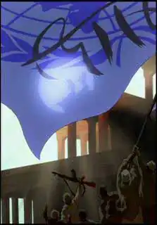 Flag is a series by Gasaraki director Ryousuke Takahashi about a small central Asian country called Uddiyana and its civil war. Japanese photographer Saeko Shirasu has been sent to take pictures of the conflict and the newly formed "United Nations Forces" war machine's efforts to bring peace to the region. During a battle in the country's capital city, the local militia groups and the UNF drive out the insurgent groups and scale a statue in the city square to raise a modified version of the UN's flag. Saeko, attempting to get a picture of two women praying on a rooftop, catches the flag in the picture as well, and photo circulates around the world, inspiring a message of peace and unity for the warring factions, and even spurs discussions of a possible cease-fire agreement.
