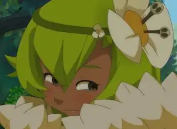 - Princess Amalia of Wakfu, pictured above. The big flower closes at night and even wilts when Amalia is dying in season 1 episode 7, so it is clearly a real one, kept alive by the Sadida's Green Thumb powers. It's not part of her hair, though, as she can still take it off. As if not enough, she sometimes adds another flower on the opposite side.