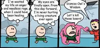 - In The Order of the Stick, Belkar is normally a psychotic mass murderer, but in one strip, Varsuvius uses a spell to increase his Wisdom, at which point he realizes the error of his ways and vows nonviolence. This lasts for all of about 15 seconds before the spell is dismissed.