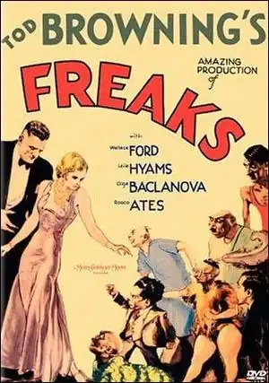 (1932) is a horror film about sideshow performers, directed and produced by Tod Browning and released by Metro-Goldwyn-Mayer, with a cast mostly composed of actual carnival performers. The film was based on Tod Robbins' short story "Spurs". Director Browning took the exceptional step of casting real people with deformities as the eponymous sideshow "freaks," rather than using costumes and makeup.