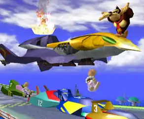 - Super Smash Bros.: Stages in this game vary from as constant as Final Destination to as chaotic as Big Blue (pictured above). In this stage you actually fight on top of cars as they race around a track. If you fall off of one and onto the asphalt, you get whisked off the side of the stage as the camera leaves you behind, resulting in a near-instant KO unless you can very quickly jump off and return to the stage.