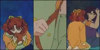 - Sailor Moon Naru does this with her pajamas to make a bandage for Nephrite when they are hiding from Zoisite in a park after his attack. She hangs onto said bandage as a token to remember him by after he dies and eventually uses it on a wound Umino gets whilst trying to defend her to show she's moved on emotionally from Nephrite's death.