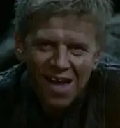 Polliver: (to Arya, while dressed as a boy) What are you looking at?! Kneel! Kneel or I'll take your lungs out, boy! |